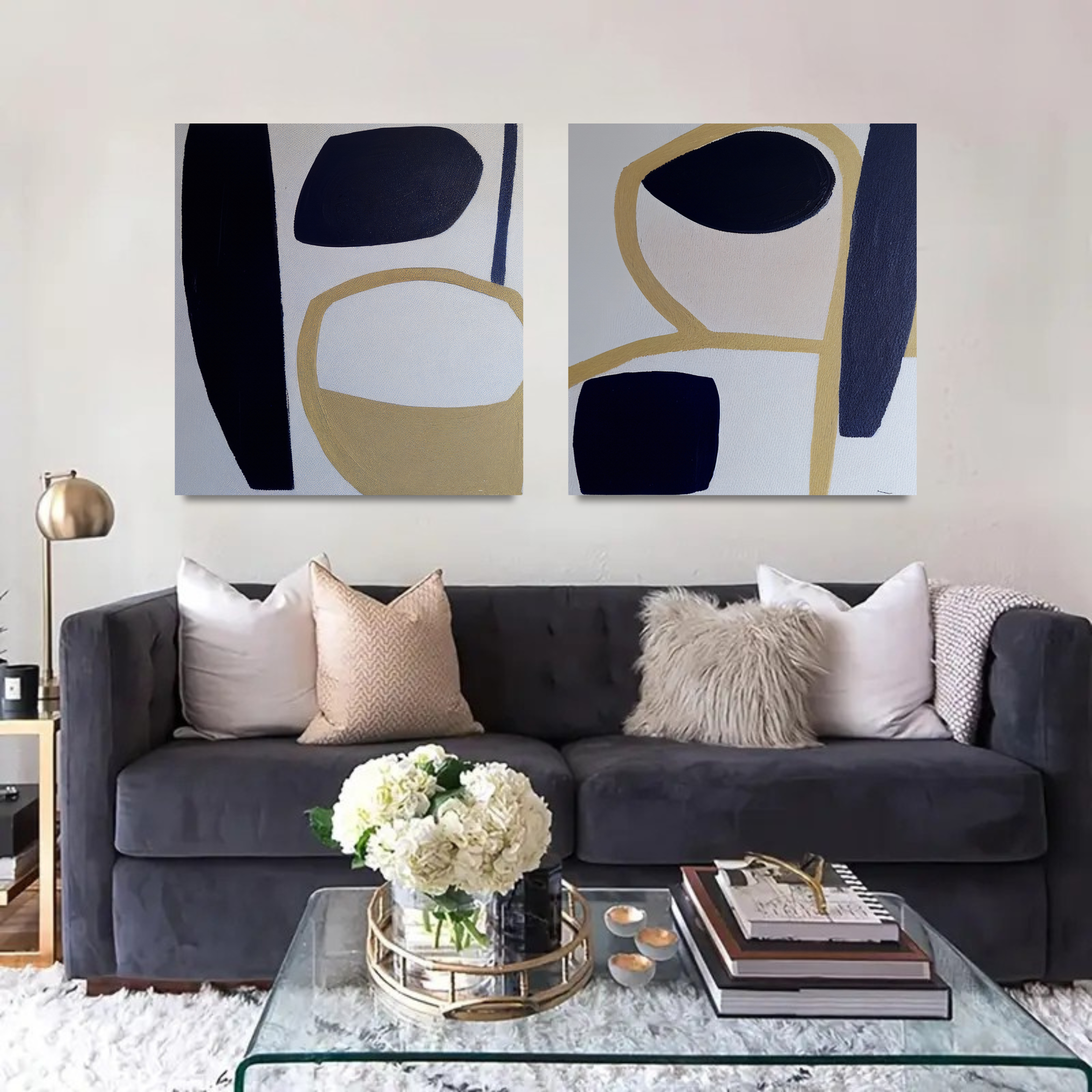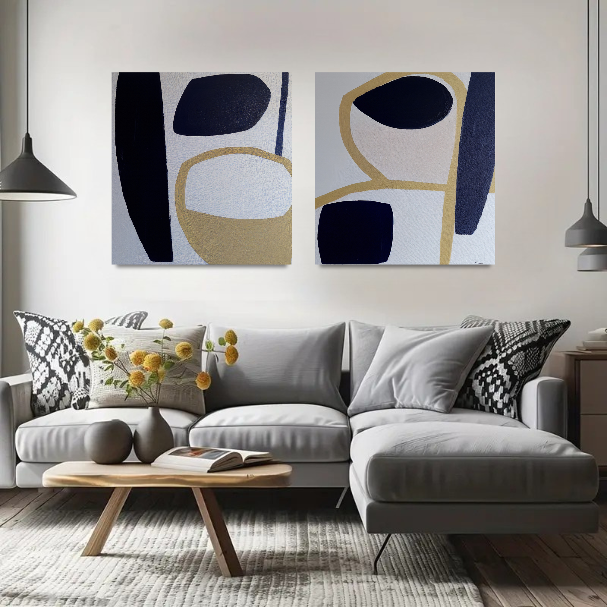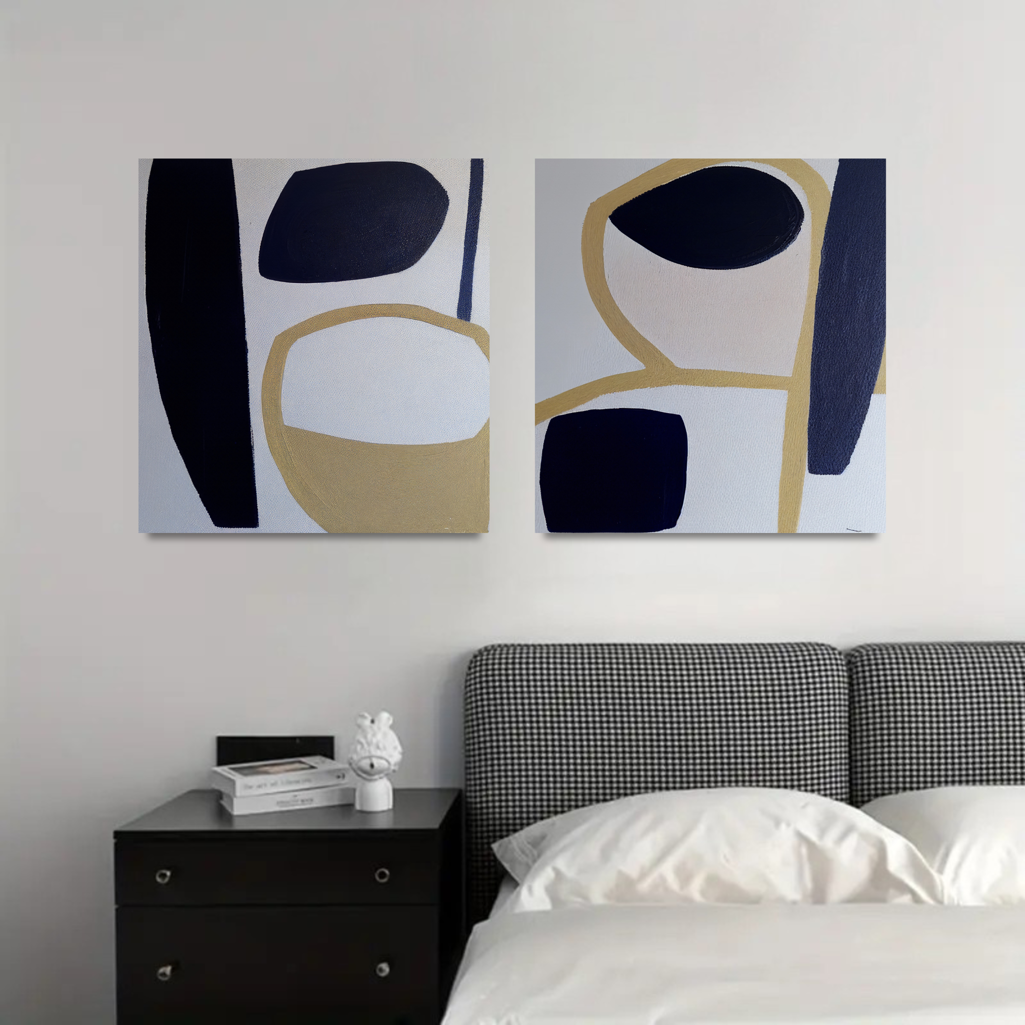Deux formes se répondent à distance, liées par un fil invisible d’équilibre et de retenue.
