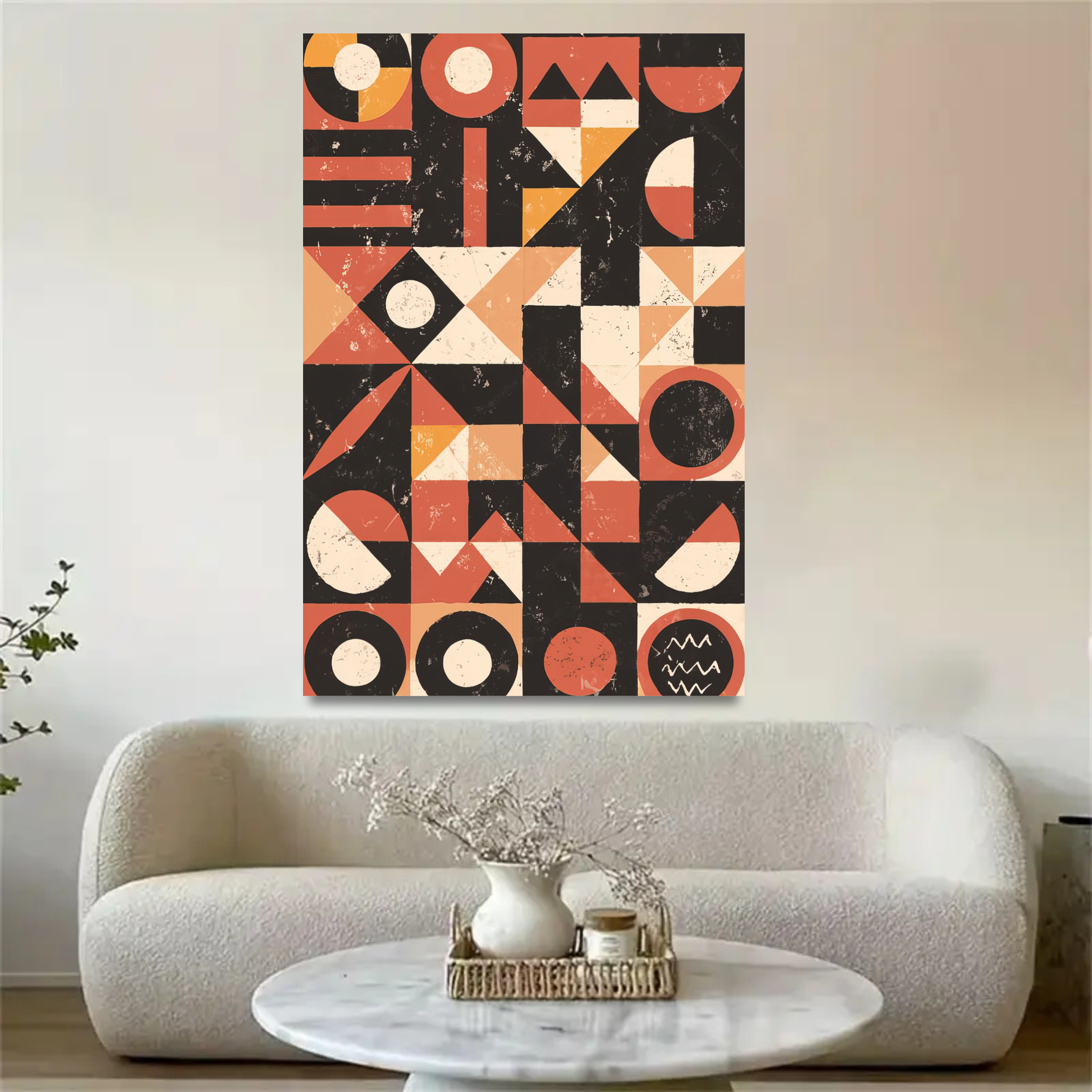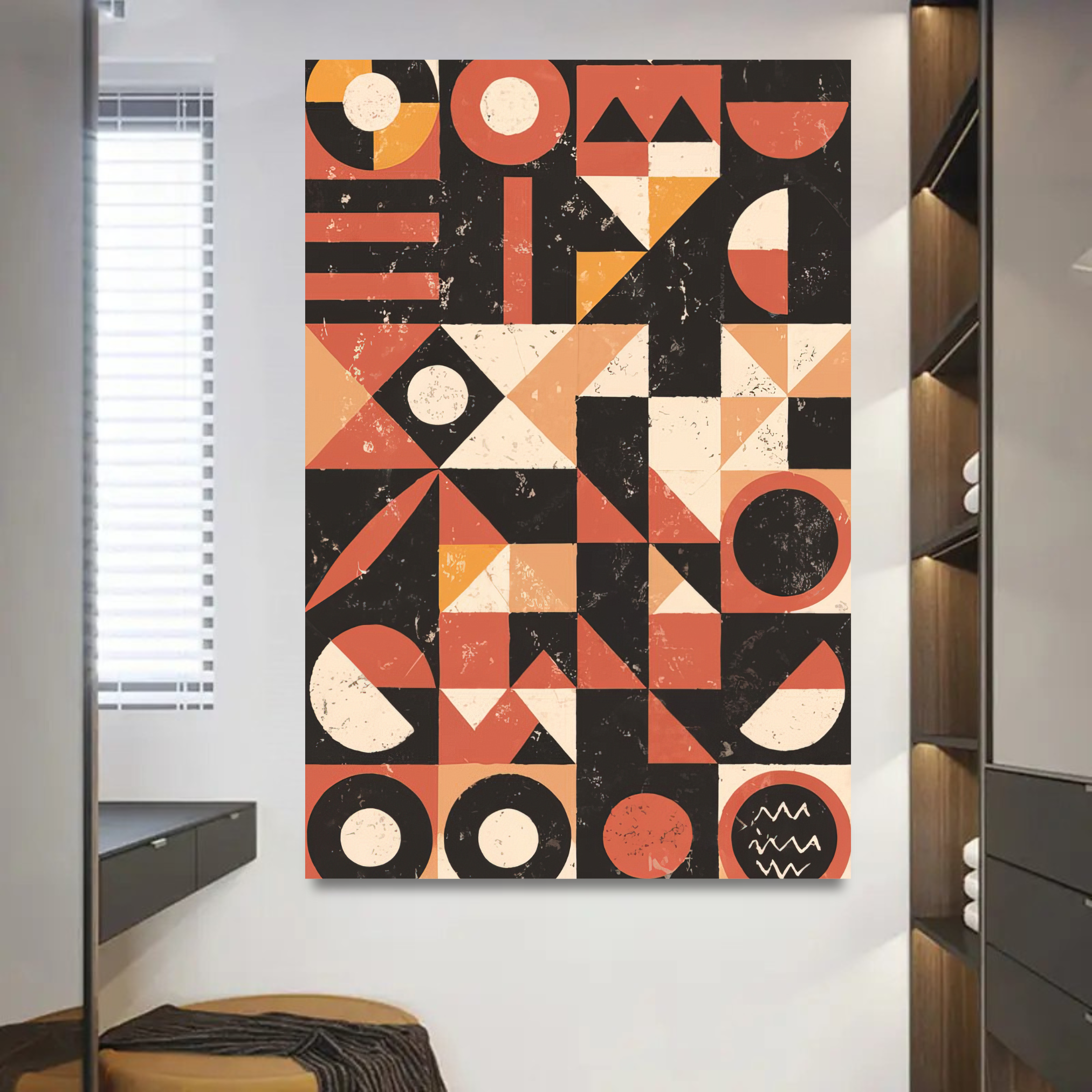 Cercles, triangles et lignes évoquent une mémoire collective, comme des signes gravés dans le temps.